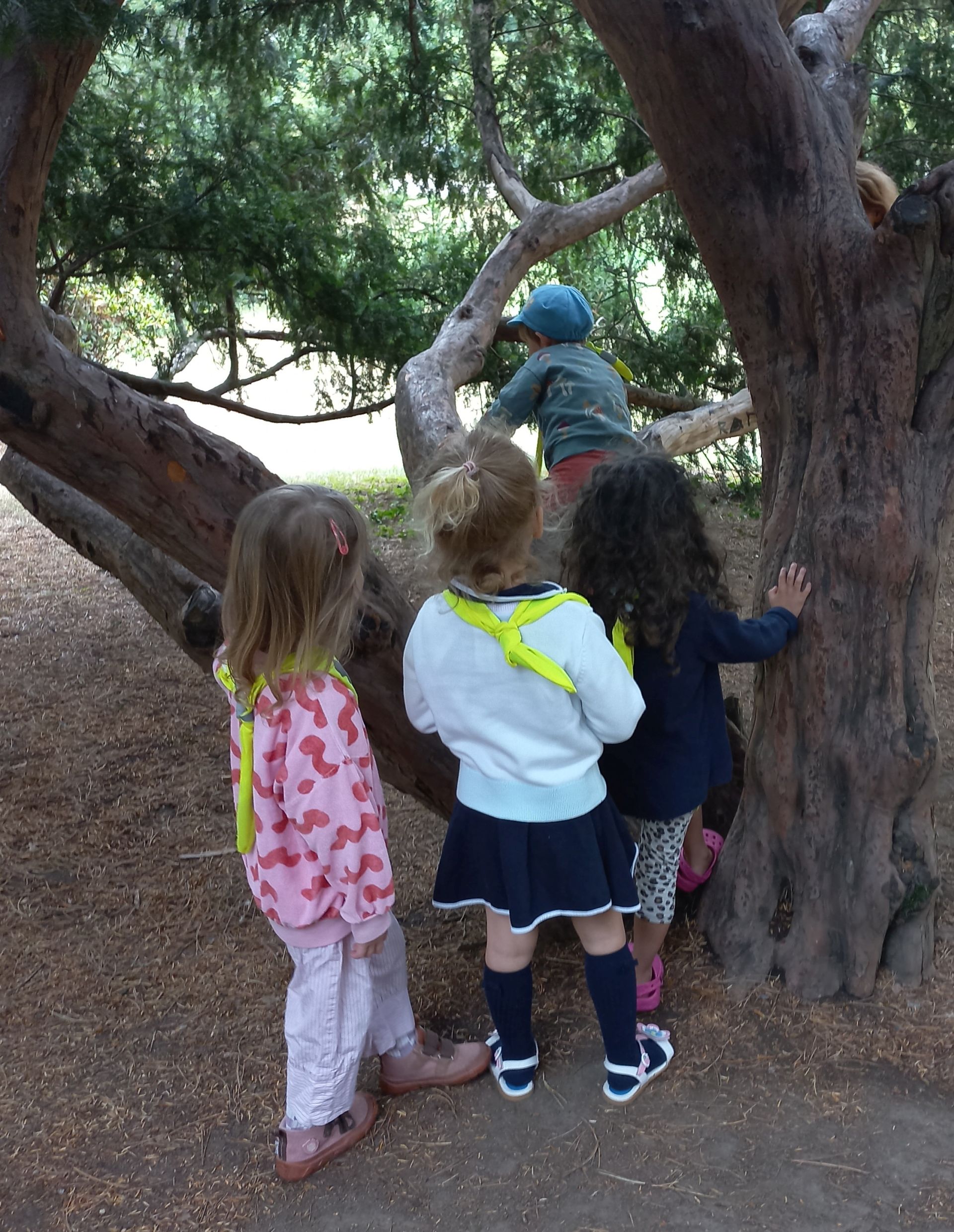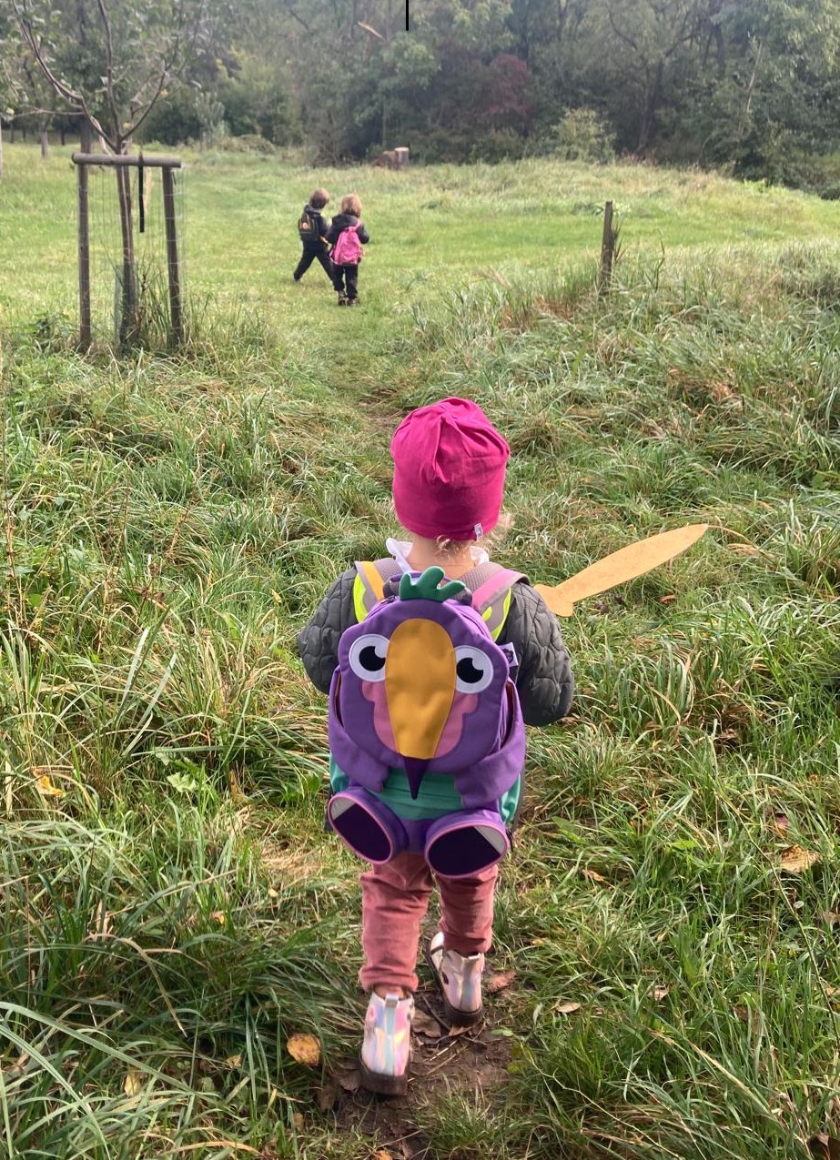 Kolem 10:30 nastává čas pro výpravu na čerstvý vzduch. V teplejších měsících podnikáme i delší výpravy v dostupném okolí, trávíme více času v některém z blízkých parků, navštěvujeme rádi sady na Veleslavíně, i oboru Hvězda nebo park na Hládkově. Když nám počasí nepřeje, vyrazíme alespoň na krátkou procházku nebo na dvoreček, kde máme své zázemí a i zde se mohou odehrávat velká "dobrodružství".